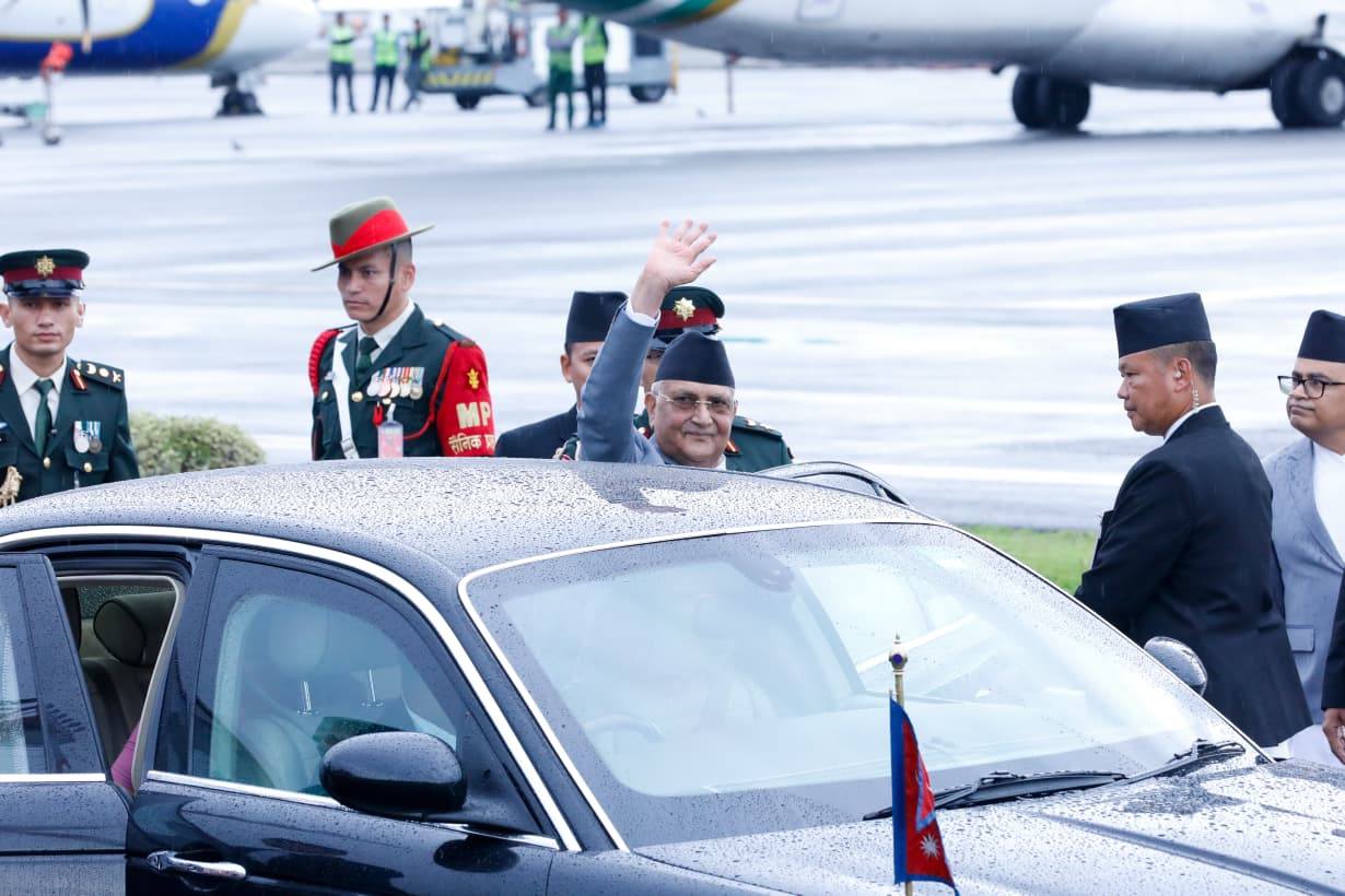 त्रिभुवन अन्तर्राष्ट्रिय विमानस्थलमा प्रधानमन्त्री ओलीलाई उपप्रधानमन्त्री एवं सहरी विकासमन्त्री प्रकाशमान सिंह, गृहमन्त्री रमेश लेखक, परराष्ट्रमन्त्री डा आरजु राणा देउवा तथा मुख्यसचिव एकनारायण अर्यालले बिदाइ गरेका थिए।