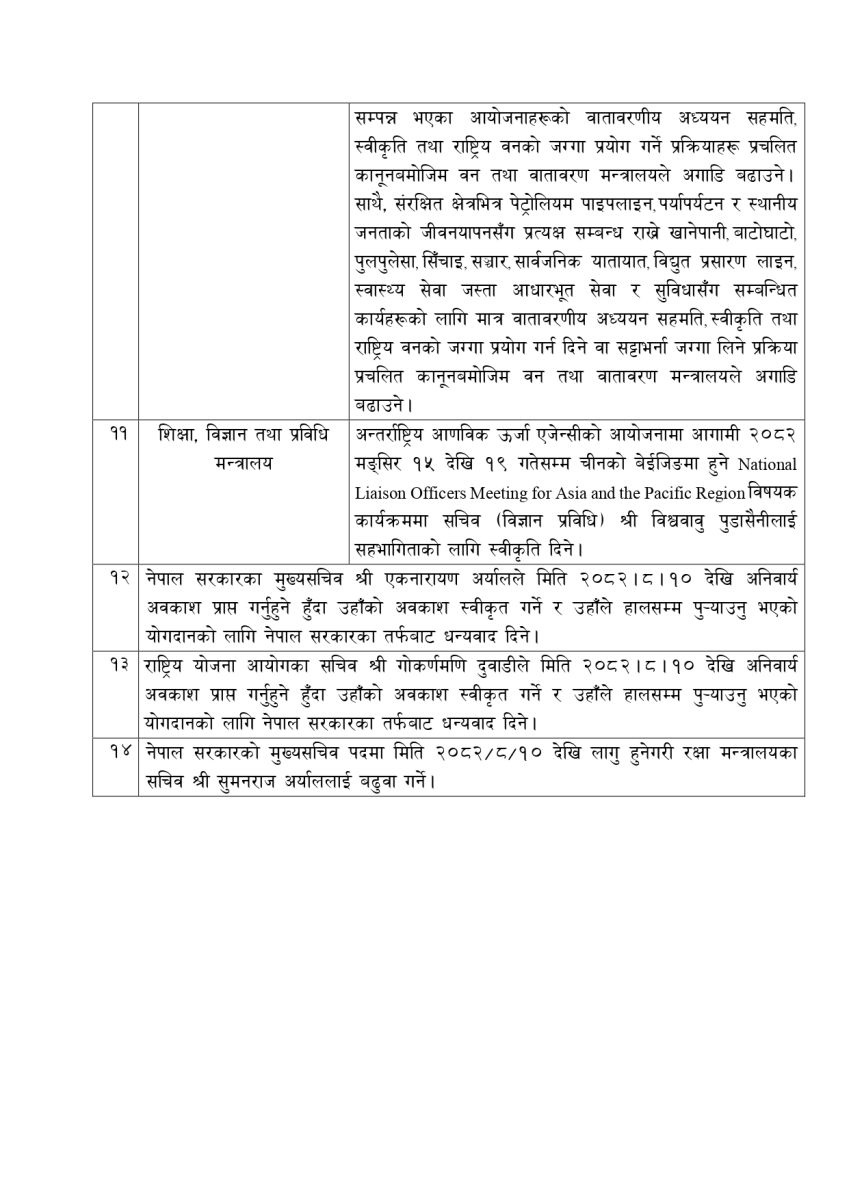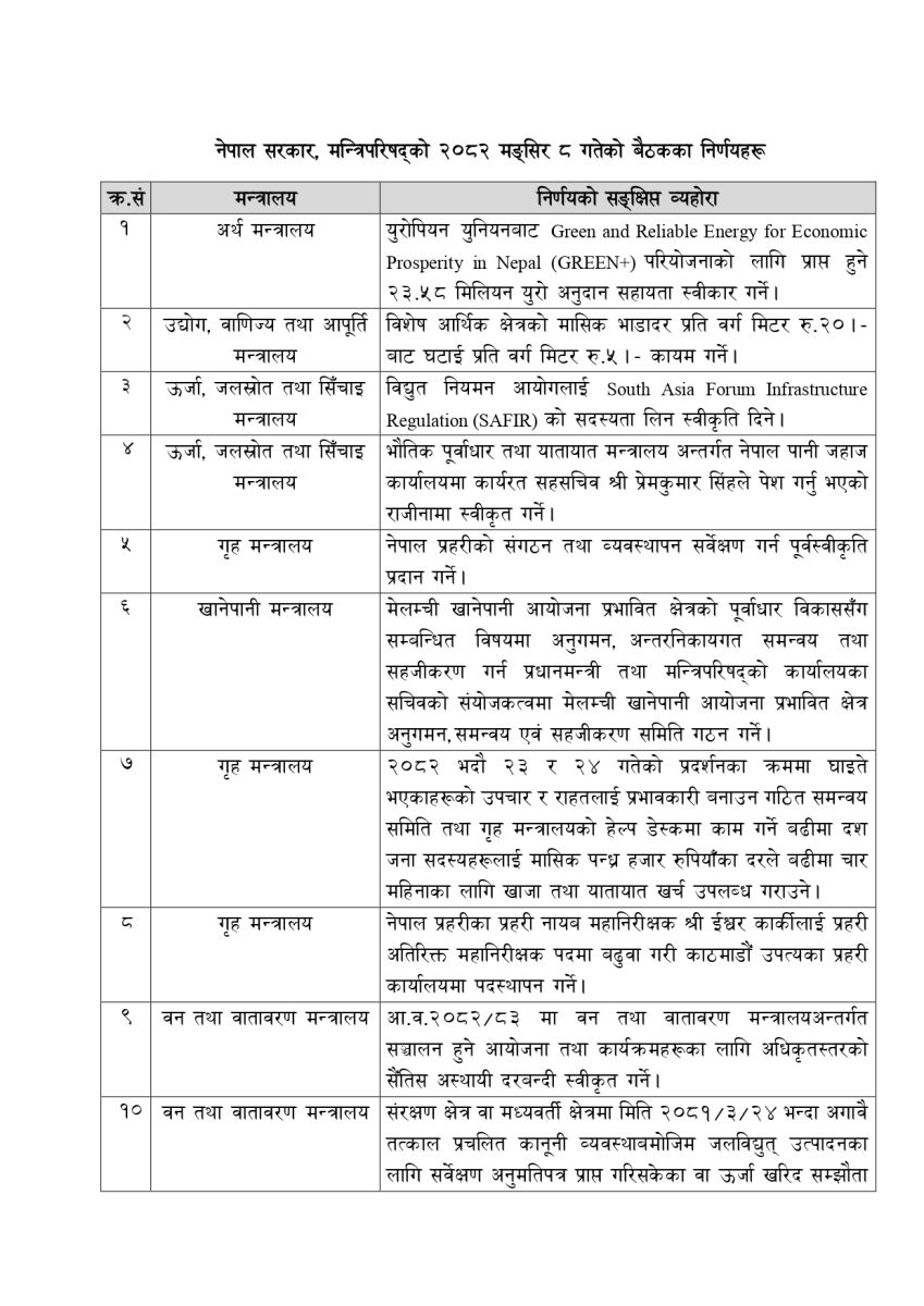 यस्ता छन् मन्त्रिपरिषद्का १४ निर्णय