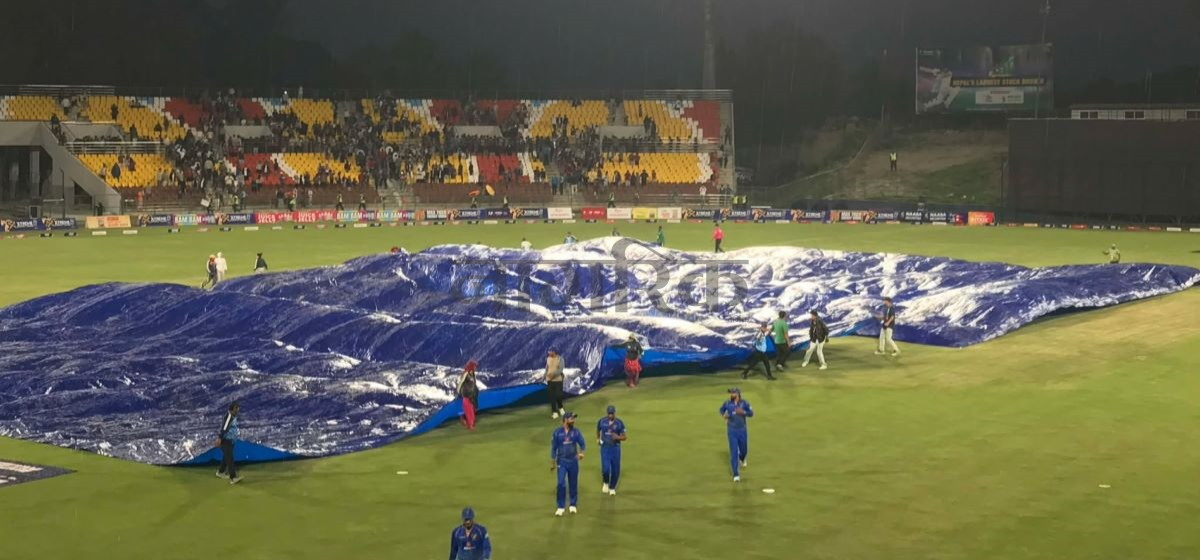 काठमाडौँ — नेपाल र युएईबीचको पहिलो टी-२० अन्तर्राष्ट्रिय क्रिकेट वर्षाका कारण अवरुद्ध भएको छ। पहिलो इनिङ्स सकिन मात्र ७ बल बाँकी रहँदा भारी वर्षा भएपछि खेल रोकिएको हो।